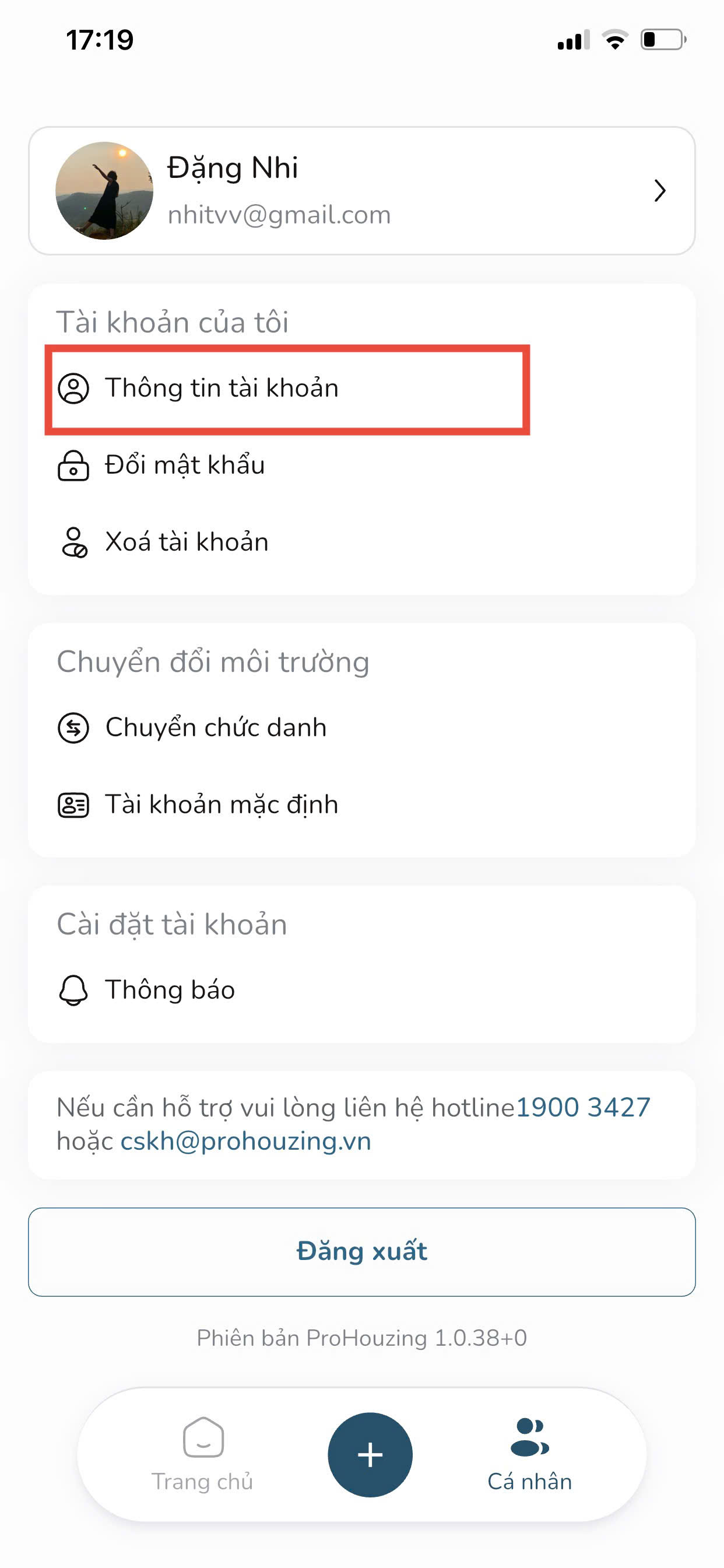 - Nếu bạn nhân viên của ProHouzing, bạn có thể xem thông tin hồ sơ nhân sự của bạn và xác thực email/ số điện thoại nếu thông tin đã lưu chưa được xác thực.