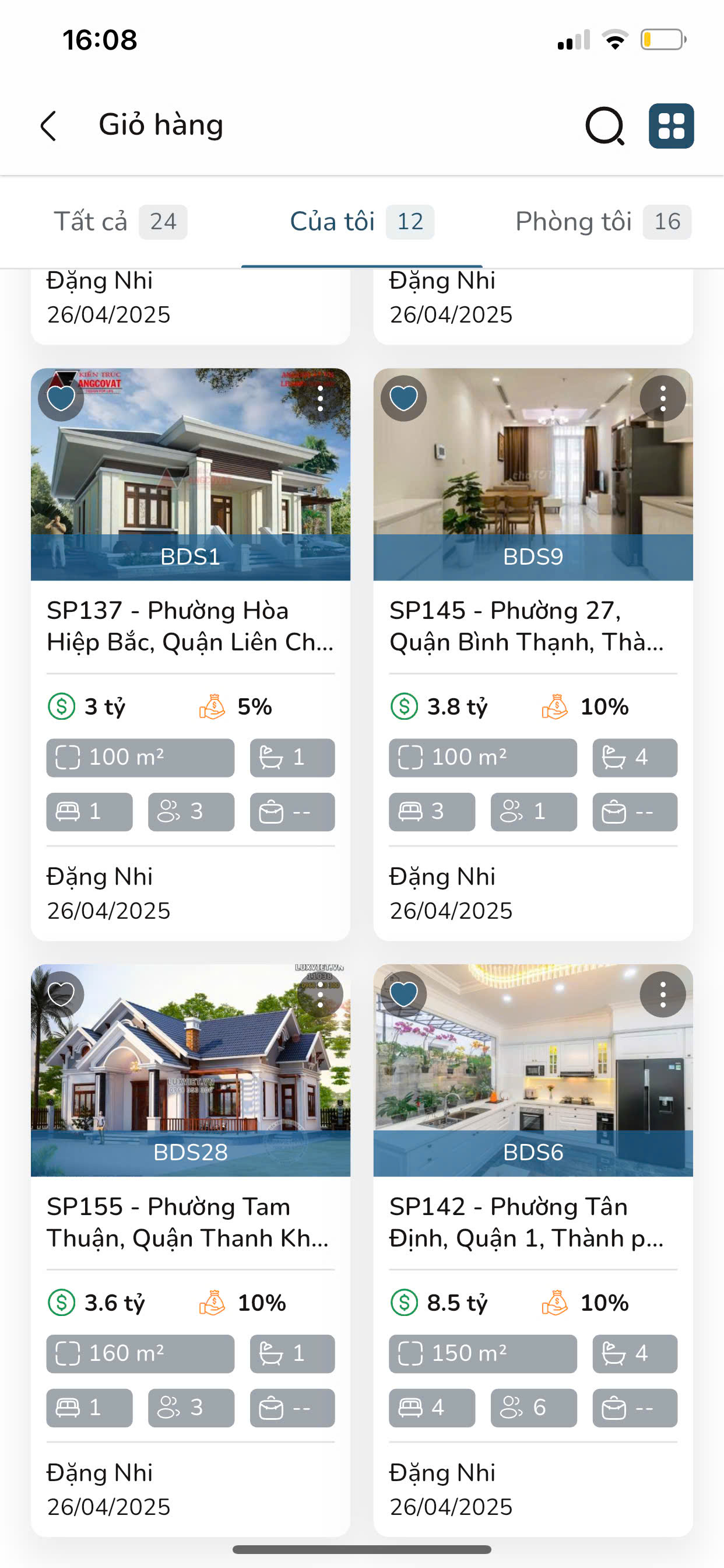 Bước 4: Tại màn hình Danh sách sản phẩm, nhấn vào biểu tượng “…” của sản phẩm cần thực hiện bỏ ra giỏ hàng.