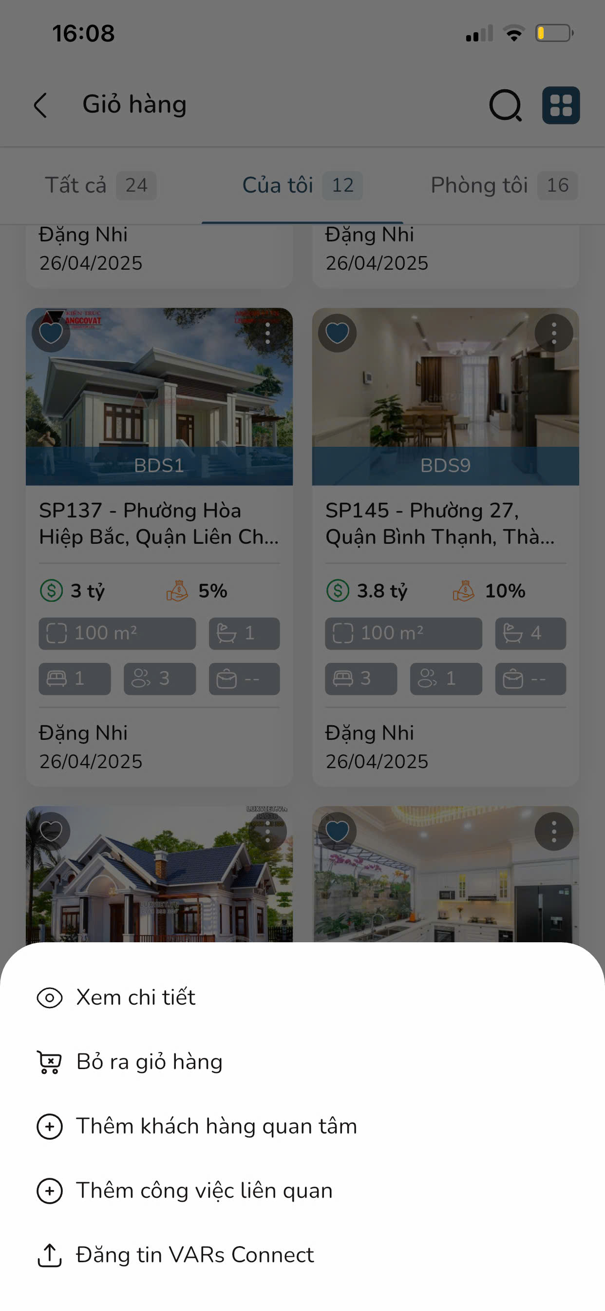 - Thêm khách hàng quan tâm bằng tính năng Thêm công việc liên quan ở màn hình Thông tin sản phẩm: