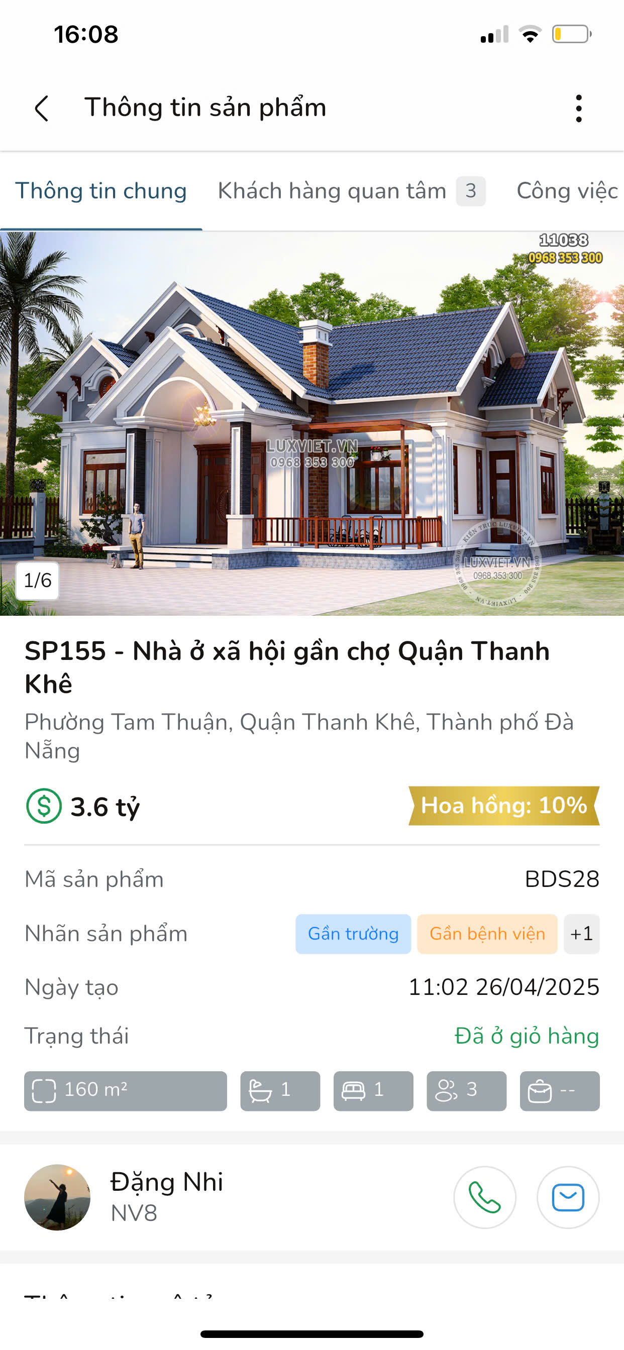 Bước 5: Bạn có thể xem thông tin chi tiết của sản phẩm, bao gồm: Thông tin chung, khách hàng quan tâm, công việc liên quan.