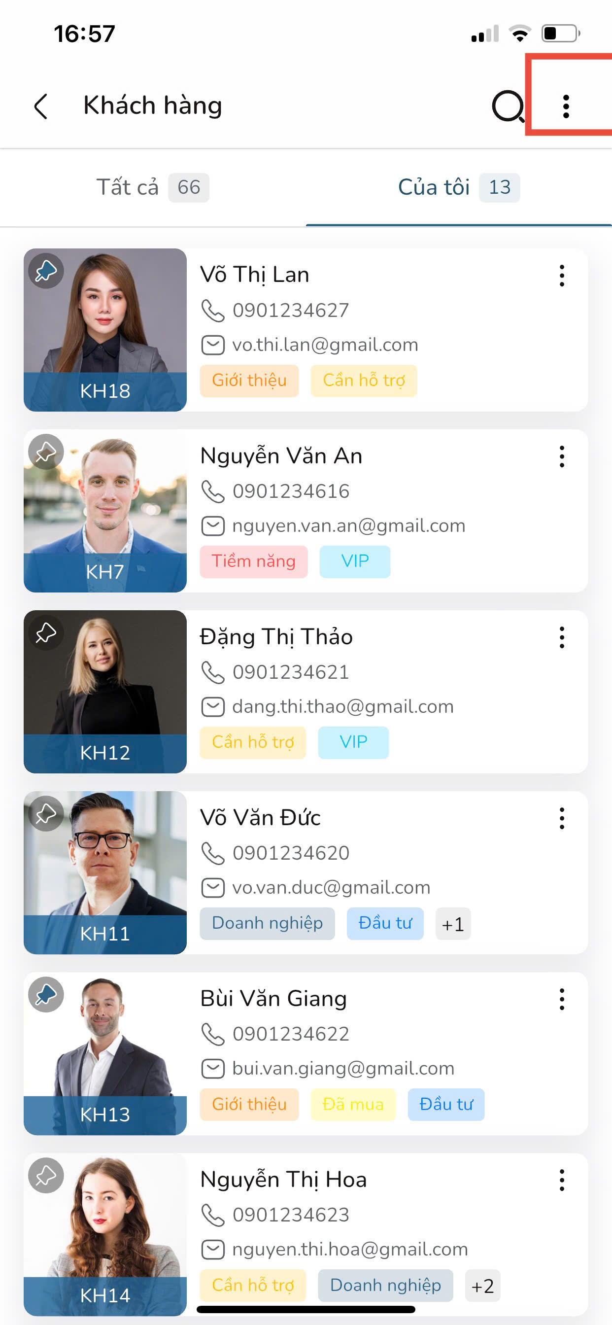 Bước 4: Tại màn hình Danh sách khách hàng, nhấn vào biểu tượng “…”.