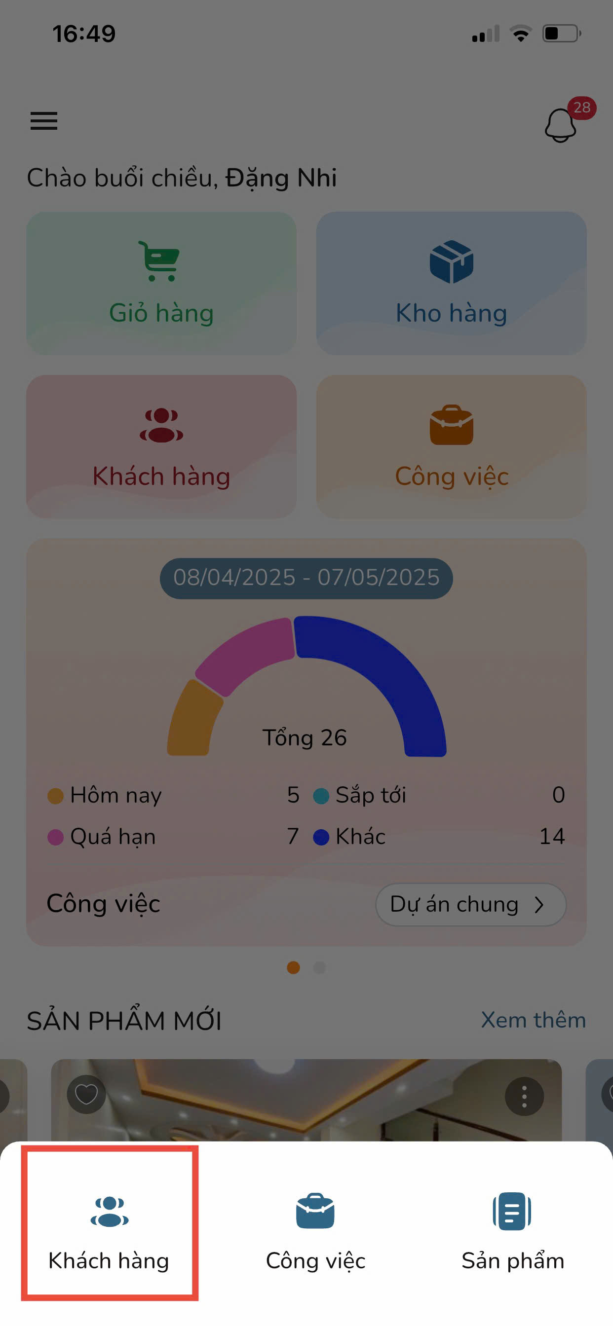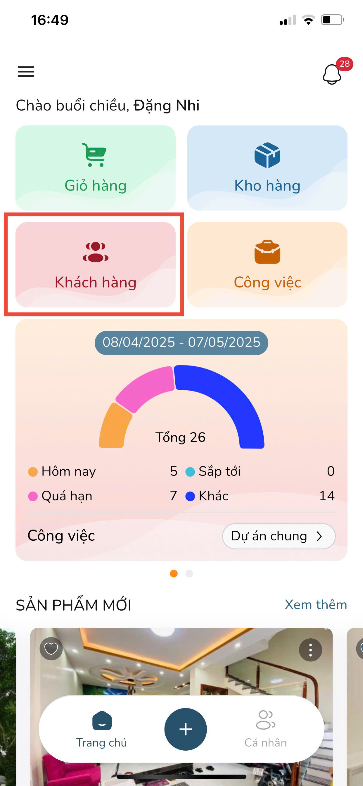 Bước 3: Tại màn hình Trang chủ, nhấn vào mục Khách hàng.