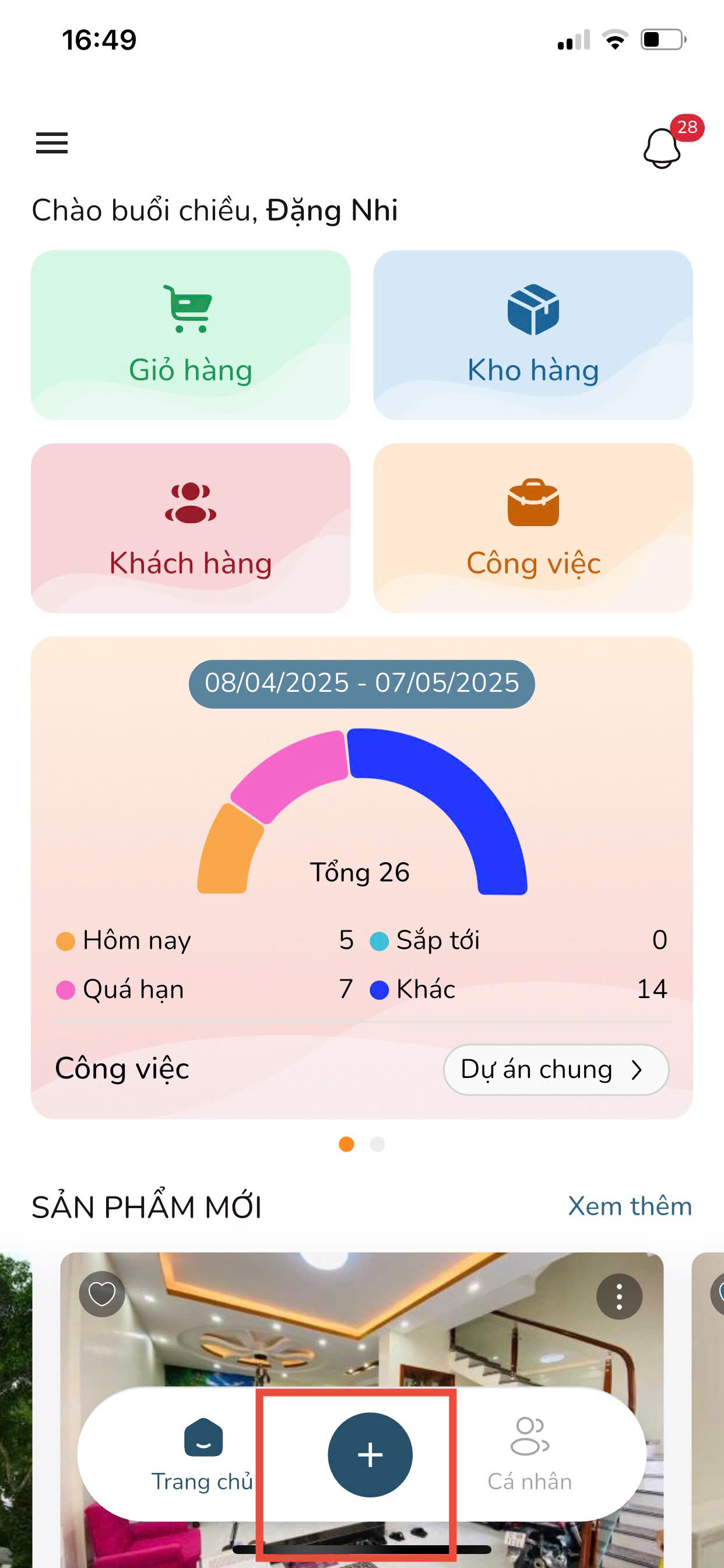 Bước 3: Tại màn hình Trang chủ, nhấn vào biểu tượng Thêm mới.