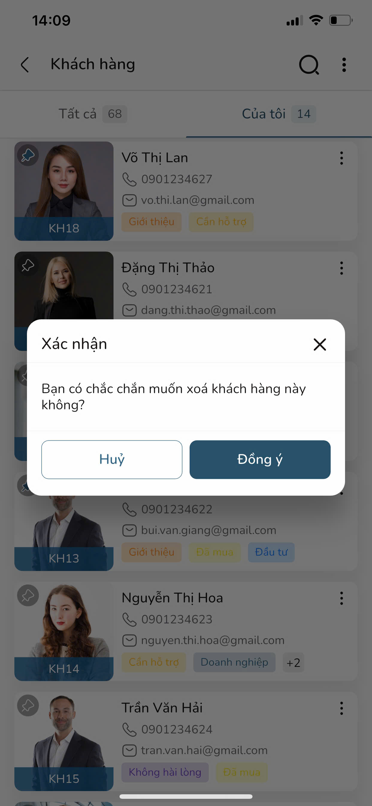 Bước 6: Chọn nút Đồng ý để xác nhận thực hiện Xóa khách hàng.